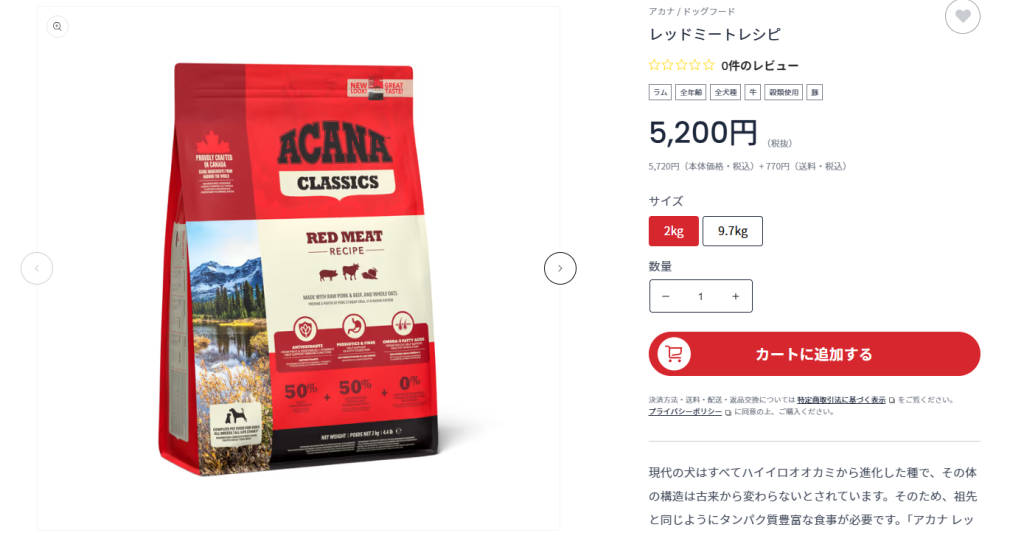 アカナには多くのラインナップがありますが、我が家の結論はアカナクラシックスの「レッドミートレシピ」を愛用しています!